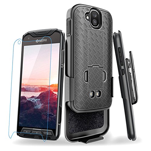 -. Feature : Compatibility : Specially designed for Kyocera Duraforce Pro case E6810 E6820 E6830 E6800 E6833 / Includes Kyocera Duraforce Pro E6820 Tempered Glass Screen Protector : 9H hardness and 100% clarity Tempered Glass Screen Protector comes with every purchase / Material : Made with premium quality polycarbonate material provides secure hold. Interior of holster is lined with microfiber to keep screen free of fingerP.R.Ints, scratches, and dust / Protection: Durable hard PC material protects from drops and shocks. Soft Touch Subtle Grid Design which gives you added protection and makes gripping your phone very easy / Kyocera Duraforce Pro E6820 Belt Clip Kickstand Case : The belt clip swivels 180 degree rotating provides many carrying choices. Shell Case Cover has built in kickstand for hands-free viewing in both horizontal or vertical angles