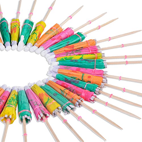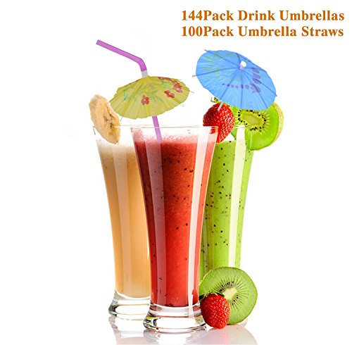 Tropical Drink with Umbrellas, Coxeer 100PCS Umbrella Straws and 144PCS Drink Umbrellas Parasols Hawaiian Accessory for Party