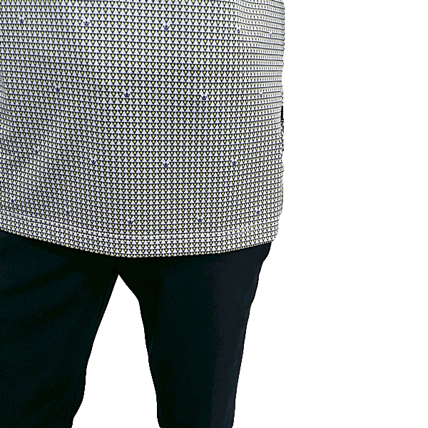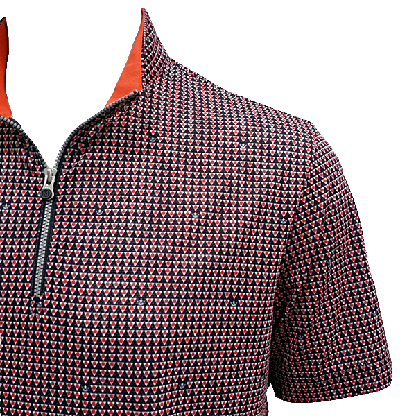 작은 삼각 패턴이 들어간 차이나 스타일 반집업 제품 통기성 좋은 메쉬 바닥을 사용해 쾌적하게 착용 가능