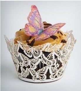 Worldoor® Hot Sale Pack of 24 White Butterfly Filigree Laser Cut Paper Cupcake Wrappers Wraps Collars Wedding Birthday Party Cake Topper Decoration / Lace Filigree Wedding Cupcake Wrapper Baking Cake Cups Wraps butterfly