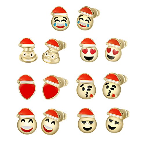 -. Title : Emoji Earrings | 6 Pairs 18K Gold Plated Earrings | 7 Pairs Christmas Emoji Jewerly | 5 Pairs Round Emoji Stud Earrings