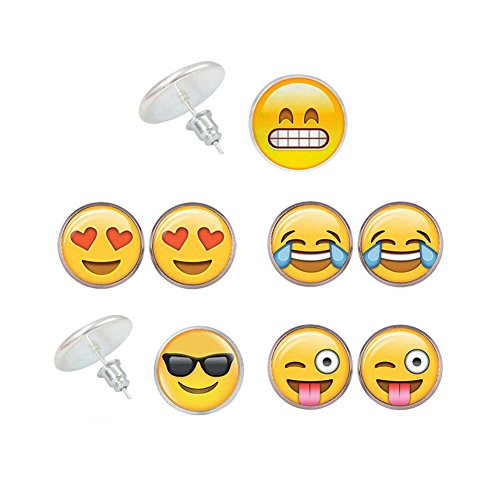 -. Feature : Unique Design: different popular emoticon expressions design,wear it according to your mood / Specifications: diameter 0.55''/14mm,0.39''/10mm,package of 5 pairs,6 pairs / Material: alloy,glass,gold plated, safety and fashionable / Cute Gift: It is a special and cute gift, suitable for women and girls, they can be used in many occasions. / Satisfaction Guarantee: we offer 100% satisfactory service, you can contact us whenever you need us