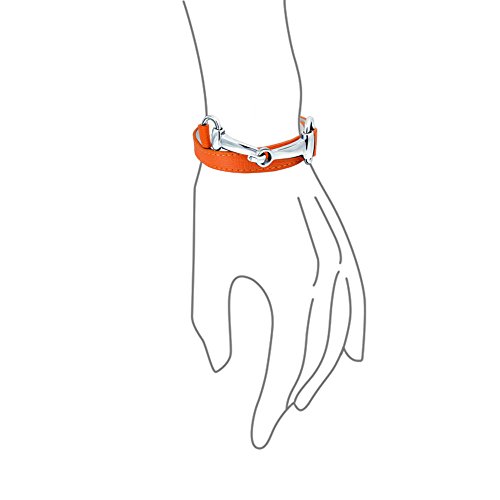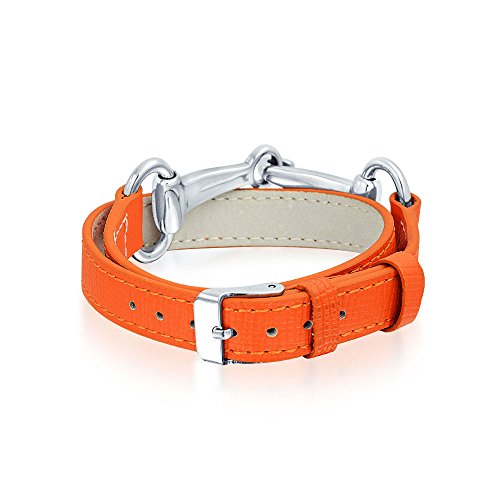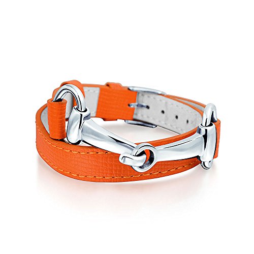 -. Title : Bling Jewelry Orange Synthetic Leather Horses Bit Bracelet Rhodium Plated