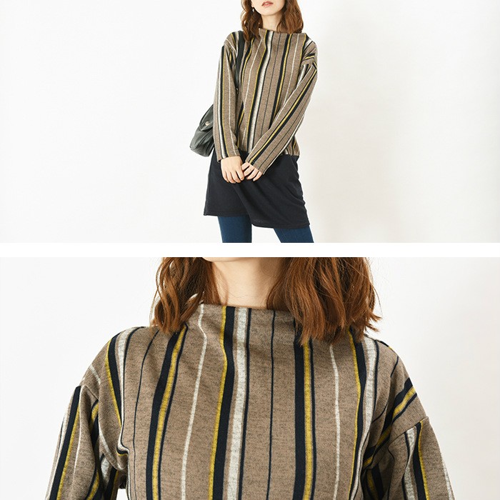 首元がややハイネックになっていて、こなれ感があり首元がすっきりと見えるので幅広い年齢層の方に大人気です。
