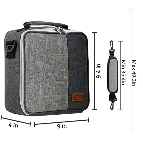 WONDERFUL DIMENSIONS:KELLM insulated lunch bag, approximate size is 9''(L) x 4''(W) x 9.4(H)''. This option offers a generous 5L of storage space and the shoulder strap of the lunch box is approximately 49.2''long.