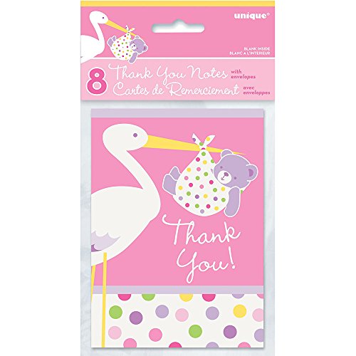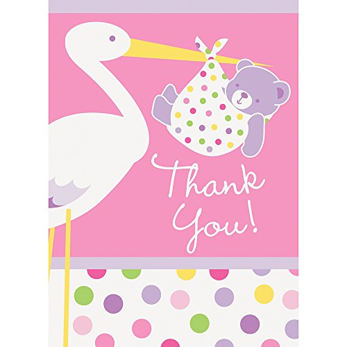 - Package of 8 Baby Girl Stork Baby Shower Thank You Notes