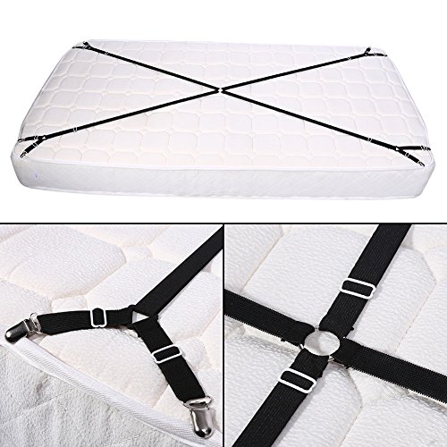 Make your life easier, this crisscross bed sheet gripper works with all types of bedding. They secure fitted sheets, flat sheets, mattress pads, and even ironing board covers
