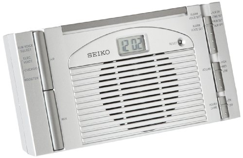 Seiko Bedside Talking Alarm Clock Silver-Tone Metallic Case