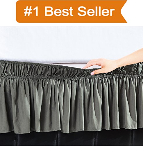 Elegant Comfort Luxury Wrinkle Resistant -Wrap Around Style- Elastic Bed Wrap Ruffled Bed Skirt 16inch Drop, Queen/King, Gray