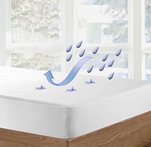 Its polyurethane membrane makes it 100% waterproof and breathable providing a restful and sweat-free sleep