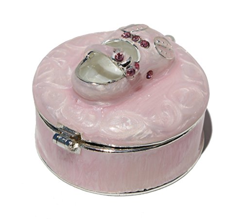 Baby Shoe Trinket Box Alloy Enamel Pink Shower Gift1 3/8 Inch High