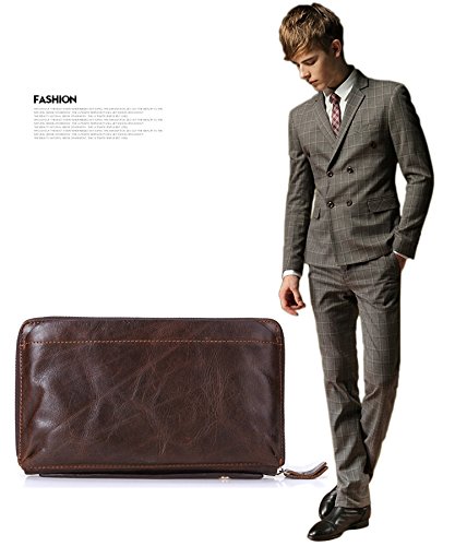 - Feature : Material: 100% First layer Wax Cowhide Genuine Leather and Thick Nylon lining, Durable, Delicate and Comfortable Hand feeling. / Come with Brand Metal Zipper, Rustproof and Smoothly. Wonderful Stitching workmanship, elegant in texture and soft to the touch / Multi-function clutch wallet for cash, card or cell-phone purpose, Fashionable and Practical / Size: 23cm×14cm×4.5cm / Structure: The front is a magnetic closure pocket, Inside main section comes with a zipper closure, it has 8 card slots, 2 big cash holder , a phone holder, one receipt holder and one zipper holder, another section with a zipper holder for coin or small pieces purpose..