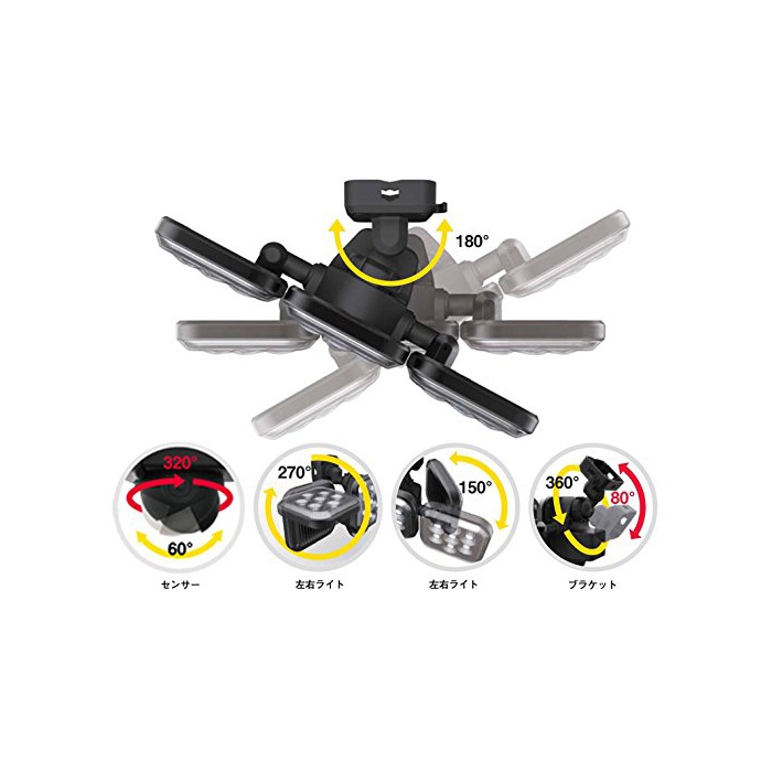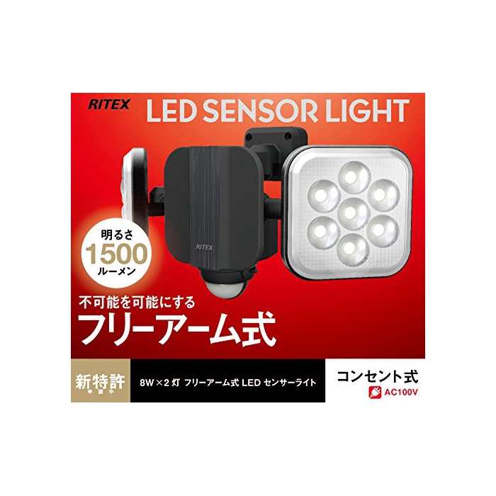 원본상품명: ムサシ RITEX フリアム式LEDセンサライト(8W×2) 「コンセント式」 防雨型 LED-AC2016