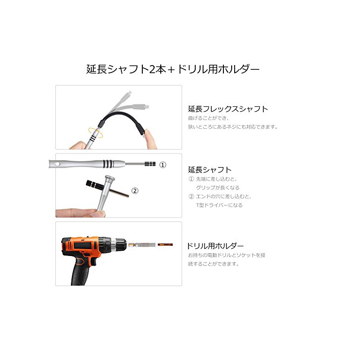 【all in one】57종류의 비트+드라이버 핸들+연장 바(확장 홀더)+플렉스 샤프트+전동 드릴용 홀더+픽형 O《푸나》+스틱형 O《푸나》.전용 케이스 첨부 오고, 비트와 홀더 등이 장미 장미가 될 걱정도 없습니다.
