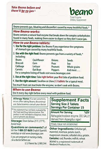 All natural supplement. Not a drug. Helps stop gas before it starts! Stops gas, bloating and discomfort from: beans, broccoli, cabbage, onions, peppers, soy products, whole grains, cereals, seeds and more. These statements have not been evaluated by the FDA.