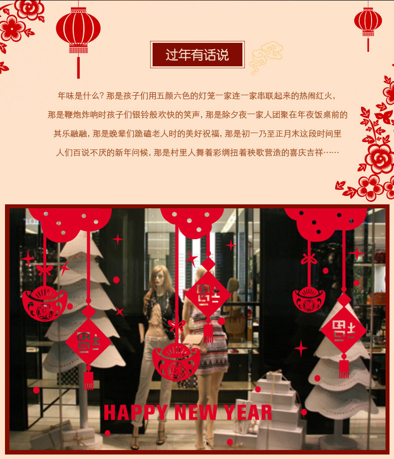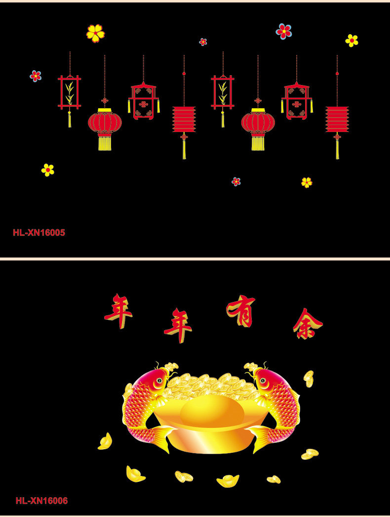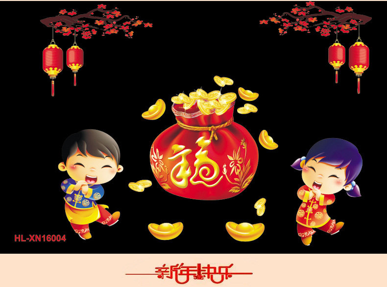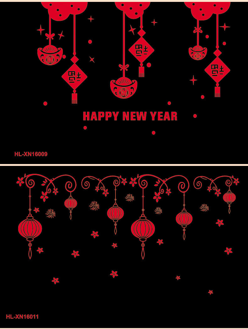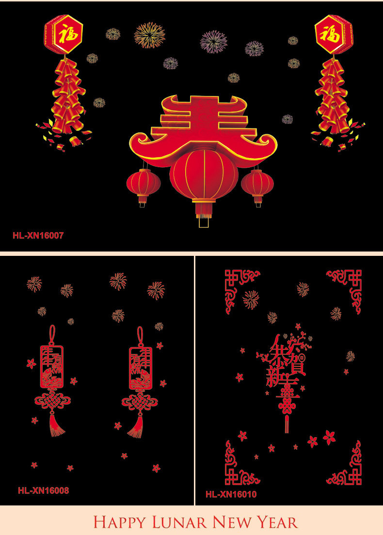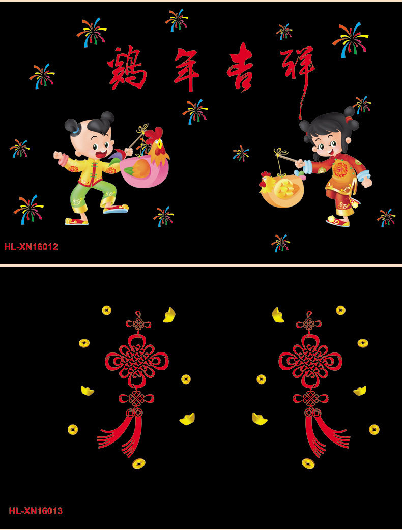 新年春节静电贴剪纸贴画套装 新年装饰学校商场橱门窗玻璃贴