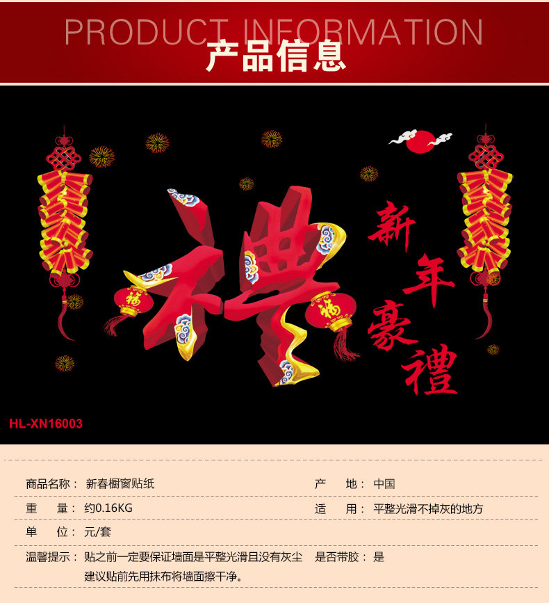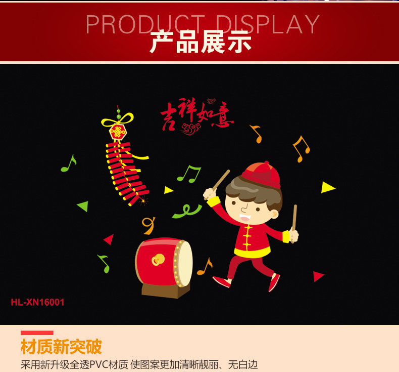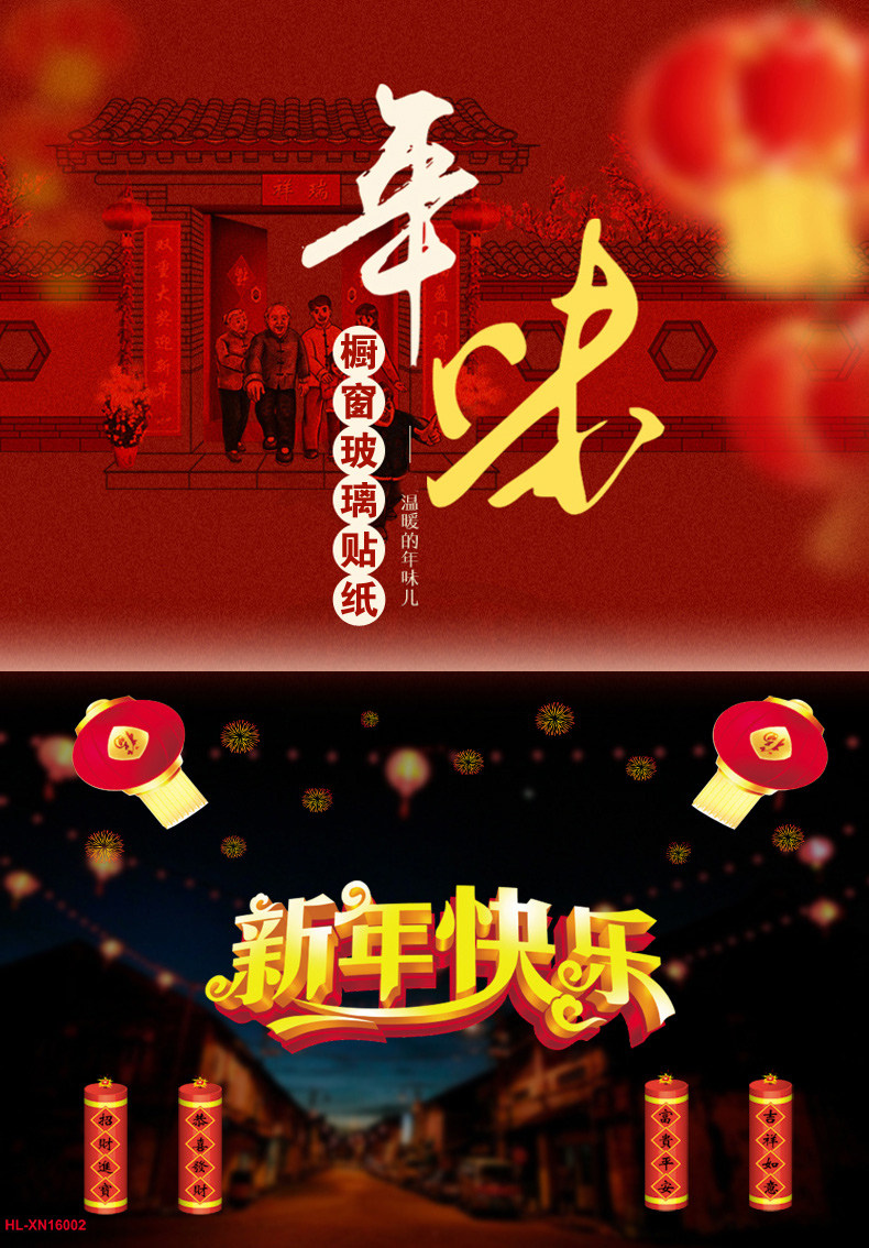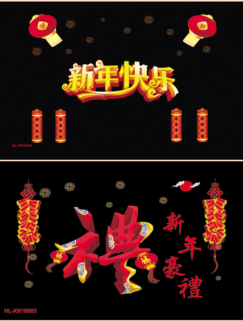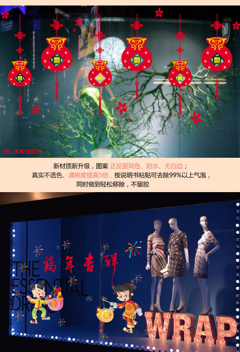 新年春节静电贴剪纸贴画套装 新年装饰学校商场橱门窗玻璃贴