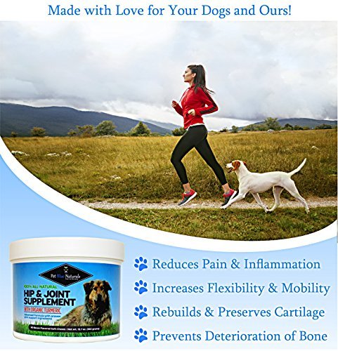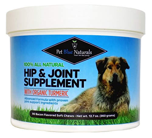 -. Feature : HOW WE'RE DIFFERENT: Tasty top rated joint medicine for dogs! We have higher quantities of the best human grade hip and joint health care ingredients - Organic turmeric, MSM, Glucosamine Chondroitin Dogs. The all-natural ingredients in our dog arthritis supplement work together to relieve pain, rebuild cartilage and improve mobility + flexibility for joint pain, arthritis, and hip dysplasia in dogs. Feel good about giving your small, medium, or large breed doggy our safe dog supplement! / JOINT & DOG HEALTH WIN-WIN: Our bacon flavor dog pain reliever eases discomfort, lubricates + cushions the joints, & repairs cartilage, MSM rejuvenates the cells & heals the joints, Turmeric is an amazing powerful antioxidant & anti-inflammatory that slows down the deterioration of joints & aids in detoxifying the liver, hearth health, relieving allergies & more! Yucca Schidigera is an internal cleanser & helps with inflammation, Vitamin C & E are essential for preventative care. / VETERINARIAN & NUTRITIONIST FORMULATED glucosamine for dogs that is perfect for all canines: young, middle-aged, senior. Not only does our joint support formula help older aging dogs with hip dysplasia & arthritis pain relief, but also helps to preserve the integrity of hips and joints & prevent the deterioration of bone + cartilage in younger dogs. Plus they will love the taste of our treats! / WHY CHOOSE US: We created this supplement for our handsome hound, Cody, on our label. We believe dogs are family & this incredible bond made it our mission to have other families focusing on what truly matters: making as many memories together that will last a lifetime. We want all dogs living their healthiest, happiest, most active life. CUSTOMER CARE PROMISE: We really care about you & your dog so if you are not absolutely happy contact us before you contact Amazon and we will take care of you / 90 SOFT CHEWS THAT ARE GLUTEN FREE, DAIRY FREE, & CONTAIN NO corn, wheat, soy, Sugars, Salts, or Gumming Agents. It's easy to digest & great for the most sensitive stomachs. At Pet Blue Naturals we use a no heat process that keeps ingredient integrity intact. They are made in the USA, in our FDA inspected, GMP certified facility & go through a purity + allergy test. Our 100% natural joint treats for dogs are proven to be safe & actually work, 100% guaranteed RISK FREE!