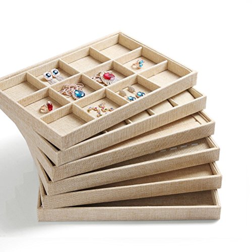 -. Title : Lovef 8 Styles Linen Jewelry Display Trays Ring Necklace Pendant Show Rack Stand Holder with Dual Jewelry Organization and Jewelry Storage