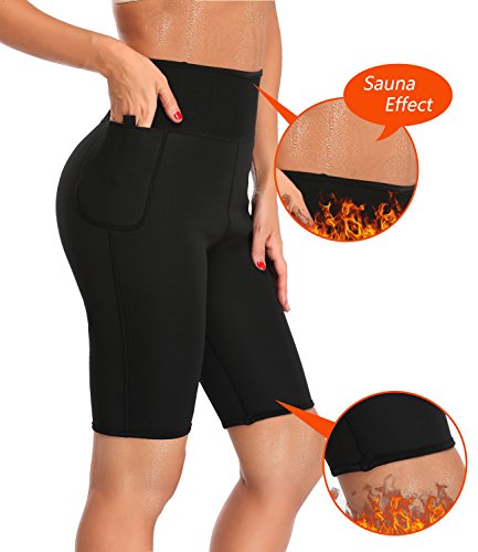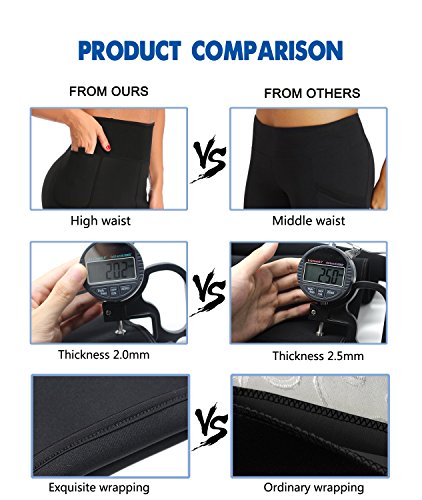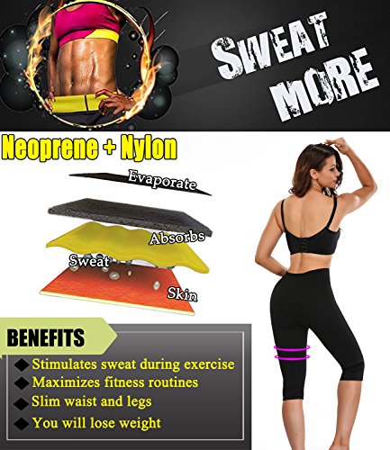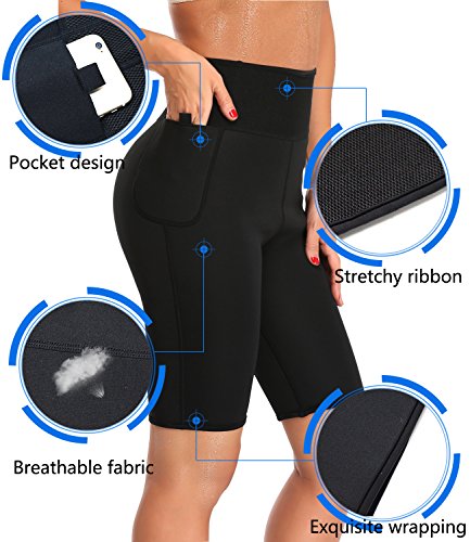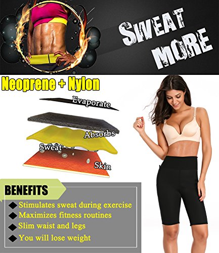-. Feature : LIGHTWEIGHT & QUICK-DRYING. The neoprene sauna trousers is made of 15% polyester, 70% neoprene, 15% nylon, which is high elasticity, quick-drying and breathable. Besides, neoprene material is the ideal material for sauna pants as it is stretchable, durable and flexible. / HIGH WAIST & POCKET DESIGN. The special high waist anti-slip bands will produce higher compression resulting in more sweating and help your body to sweat out harmful fats. The pocket space is big enough that you can put your cell phone and key when you running, cycling. / KEEP WARM & FAT BURNING. Unique fibers and material of the tummy fat burner pants keeps your body warm and heat up your core abdominal area making you sweat more than usual and help your body to remove toxins, sweat out excess water and harmful fats. / BACK SUPPORT & IMPROVE POSTURE. The hot thermo sweat leggings produce higher compression, instantly makes you look slimmer and smoother curves. Corrects posture and provides great back support. / This female waist trainer pants for zumba, yoga, gym, fitness, running, cycling and much more sports. Please refer to left picture for detailed information and allow a little inaccuracy due to hand measure