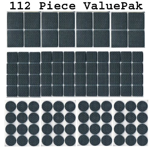 -. Binding : Kitchen -. Brand : Family Maid -. Color : Black -. EAN : 0600489803538 -. Feature : 48 Small Square Pads - 1 inch x 1 inch / 16 Large Square Pads - 1.5" x 1.5" / 48 Round Pads - 1 inch diameter / Protects floors from scraping - Perfect for home or office. / Use to fill uneven legs of furniture and appliances -. Label : FamilyMaid -. Manufacturer : FamilyMaid -. Model : 85279 -. PackageQuantity : 1 -. ProductGroup : Home -. ProductTypeName : HOME_BED_AND_BATH -. Publisher : FamilyMaid -. Studio : FamilyMaid -. Title : 112 Piece Rubber Anti-Skid Pad Value Pack (Furniture and Floor Protectors) 112 pcs of assorted sizes -. UPC : 885490228406