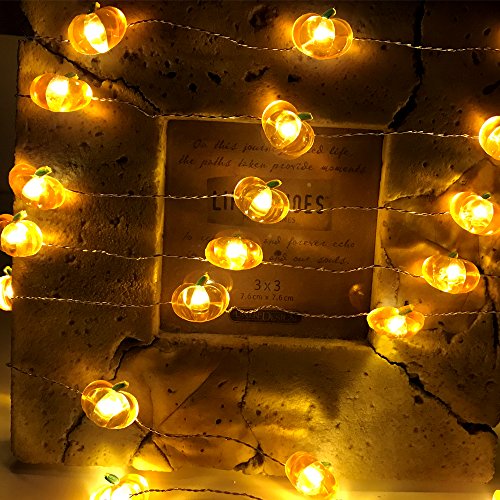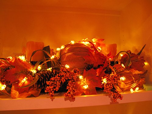 Miya Life 40 LEDs battery operated string lights are perfect for use to any decorative project. Newly design battery box (No more screws!!!) with locking clips is waterproof and very easy to hide perfect for decoration indoor and outdoor. LED Orange Pumpkin Fairy String Lights create a fall and Harvestl lighting experience for your home, party or thanksgiving fall harvest day.