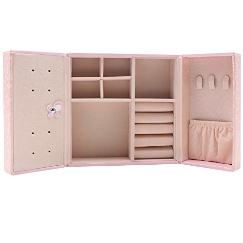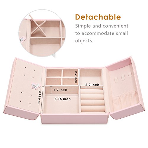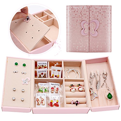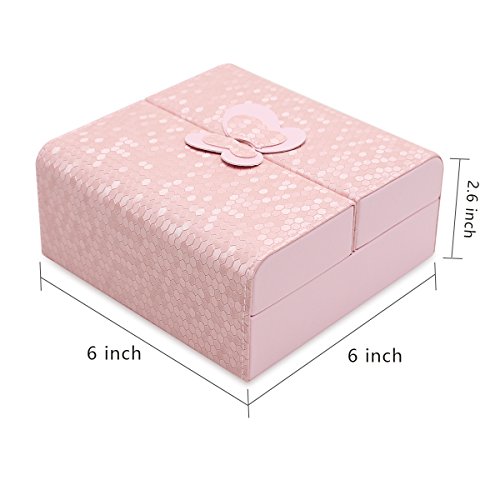 Daintymuse Pink Butterfly Jewelry Storage Box as a Gift Home Decoration for Girls Teens Rings Earrings Bracelets Necklace Display Holder Travel Container Leather Case
