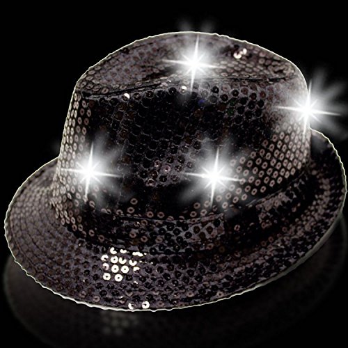 Studio : Getting Fit Publisher : Getting Fit Binding : Toy Product Description Light up any event in sophisticated style with our Black LED Sequin Fedora. This cool black fedora is a hot accessory that's bound to be a hit with any crowd Wear to add some fashion flair to your own attire, hand it out at a charity event, use as a party favor at a birthday party, or incorporate it into your party decorations, however you use it this black fedora is guaranteed to look great for any occasion Our black fedora features black sequins that sparkle and shine the minute you turn on the six black LEDs that adorn the hat. Set the LEDs on your black sequin fedora to one of three settings slow flash, fast flash, or steady on for a fabulous look that's sure make you the center of attention Each black fedora comes with three AG13 batteries which are included, installed, and can be replaced. One size fits most adults. Our Black LED Sequin Fedora is sold by the piece. 0