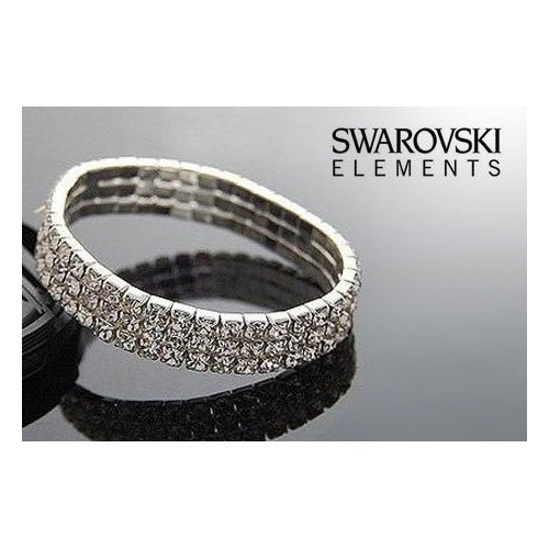 -. Title : Triple-Tier Swarovski Elements Austrian Crystal Stretch Bracelet in Silver Tone