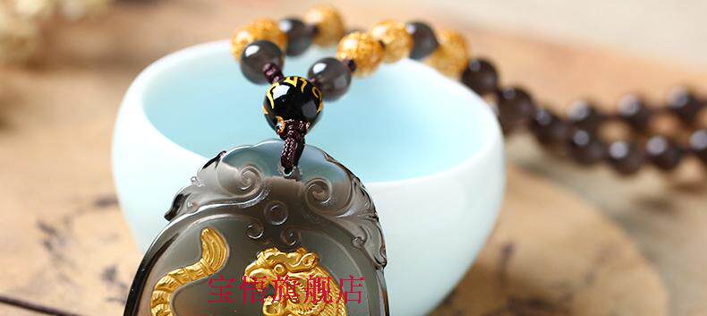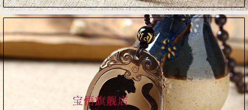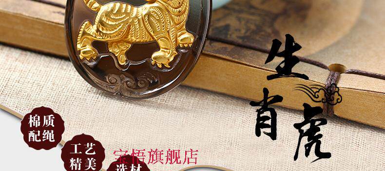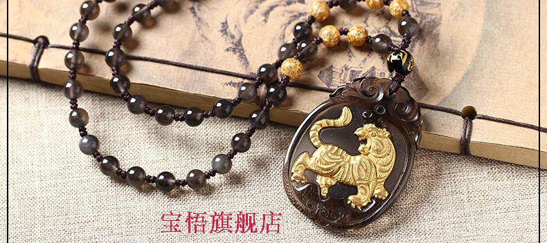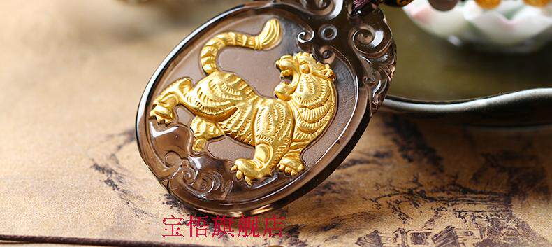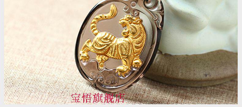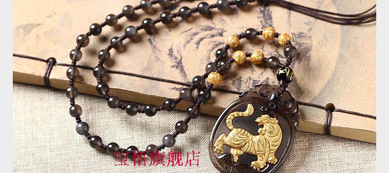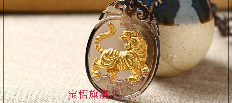 开光冰种黑曜石镀金十二生肖虎吊坠黑曜石龙马乘龟吊坠
