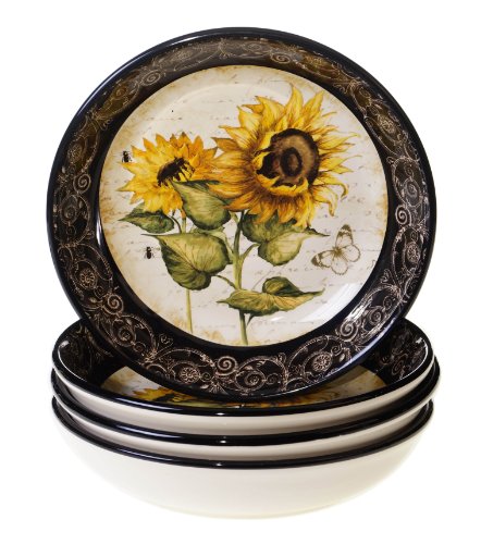 Certified International French Sunflowers Soup/Pasta Bowl, 9.25-Inch, Set of 4