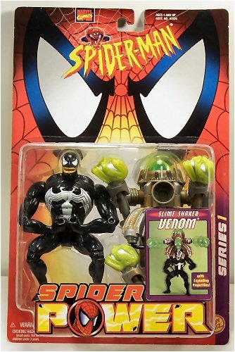Powerfully built and armed with an array of devastating alien weapons, Venom is the deadliest foe of the Amazing Spiderman. Measuring approximately 5.25 inches tall, this durable action figure is fully articulated and comes with an impressive weapons arsenal that mounts on his back like an oversized, futuristic backpack. Venom's ominous weapon pack comes with three skull-shaped missiles that can be easily loaded into the cannons, also included. Pull on the cord in Venom's back to wind up the firing mechanism, then release the cord to launch the missiles in succession. Venom's arms shake when the missiles are fired so that it looks like he's firing the missiles with the hand-held controls on the weapon. Once fired, the head of each missile opens up to reveal a small black spider web. To trap his enemies, Venom keeps a supply of green slime inside the see-through dome on top of his weapon pack. This action figure has an intimidating, almost maniacal look that may be frightening to younger kids. --Chris Burns
