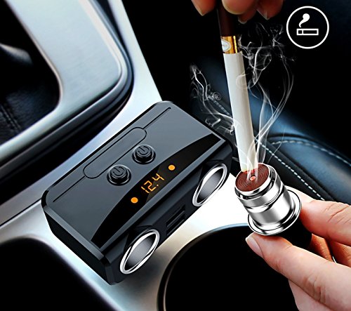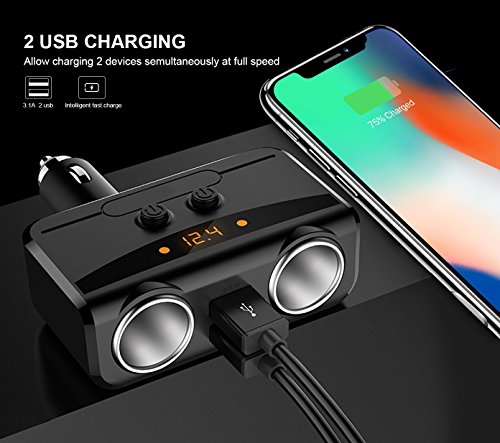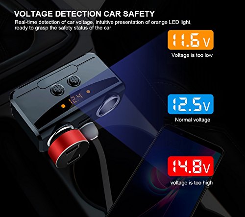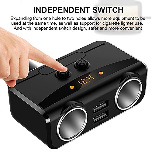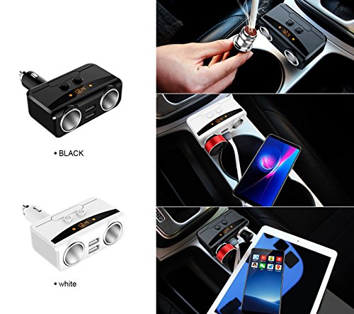 -. Feature : ※ MULTI-FUNCTION CAR CHARGER ADAPTER - 80W Power output, it can supply power for 2 devices at the same time ,cigarette lighter splitter automatically matches the current for your device , such as: GPS, DVR, car vacuum cleaner and other car electric appliances. / ※ SAFE FAST CHARGING - Dual usb charge ports with 12V/24V 3.1A total output enable you to rapidly charging for 2 devices simultaneously. The built-in smart chip can intelligently match the current to 1A to 2.1A for your equipment. / ※ BUILT-IN LED BATTERY SHOW - Smooth and shiny plastic surface with concise LED screen to display charging status, vehicle battery voltage, considerate low voltage alarm. / ※ INDEPENDENT ON/OFF SWITCH FOR EACH CIGAR SOCKET & PLUG AND PLAY - Two independent switches designed for two cigarette lighter for safe operation, no need to plug in and out your car plugs, reduce wear and tear, expanding lifespan of your GPS. Wireless and compact design just plug this car outlet adapter into the cigarette lighter directly with no more extra wires. Convenience activities in car. / ※ BUILT-IN 10A FUSE 9 HEAVY SMART SECURITY PROTECTION - Designed with high protection, built-in 10A replaceable fuse and protective circuits prevent the product and your devices from overheating and overcharging, over-temperature, overcurrent, overvoltage, overload, uninterrupting performance of navigation and media streaming.
