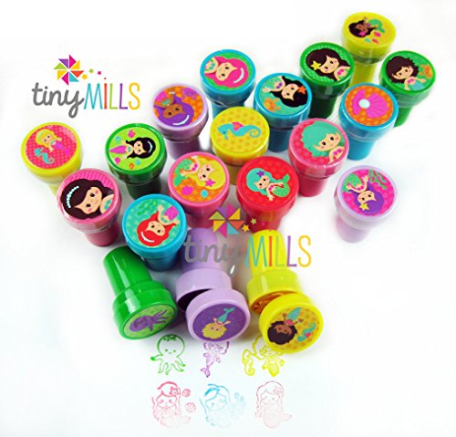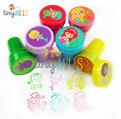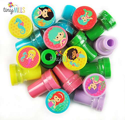 Our mermaid stampers make perfect party favors for a mermaid or under the sea birthday celebration! There are 24 DIFFERENT stamp designs. These stampers are perfect for create your own greeting cards, scrapbooking and decorating stationery. Have this stamp assortment at home, in the classroom, in art class, in church Sunday school. Our stamps are non-toxic, lead-free have passed all CPSIA and ASTM testing. Safe for children to use. 1.5 inches tall, 1 inch in diameterFeature