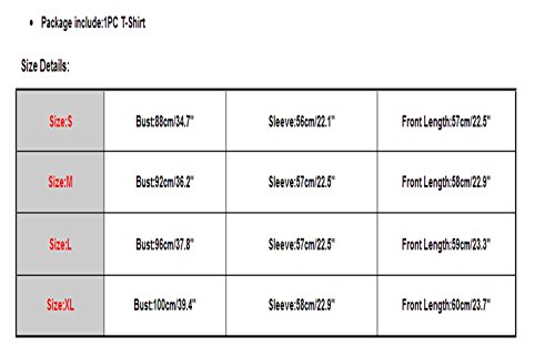 Binding : Apparel Product Description Specification: Size Details: Size:S-Bust:88cm/34.7"-Sleeve:56cm/22.1",Front Length:57cm/22.5" Size:M-Bust:92cm/36.2",Sleeve:57cm/22.5",Front Length:58cm/22.9" Size:L-Bust:96cm/37.8",Sleeve:57cm/22.5",Front Length:59cm/23.3" Size:XL-Bust:100cm/39.4",Sleeve:58cm/22.9",Front Length:60cm/23.7"