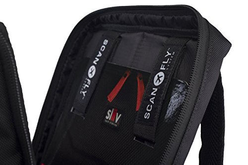 -. Feature : Exclusive ScanFly tethered laptop system compatible with optional Sliiv Tech Sleeves in 11", 13", or 15". / Spacious "glove box" fold-down compartment fits smaller gadgets like iPad, headphones, sunglasses and hard drives. / Overhead clip for eyewear or headphones. / Side cargo pockets perfect for power cables and chargers. / Insert for trolley or pull out lage handles, works on our Solo Series carts.