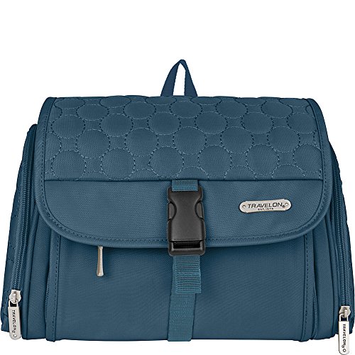 Studio : Travelon Publisher : Travelon Binding : Apparel Product Description Perhaps the perfect toiletry kit, this convenient kit hangs flat from a hook or towel bar for easy access to its contents. With the zippered pockets, compartments, and built-in shelf, there’s a place for everything. When it's time to leave, simply zip it up and tuck it into your suitcase For more than 35 years, Travelon has been making travel easier and safer with products that provide protection, peace-of-mind, safety, security and organization 0