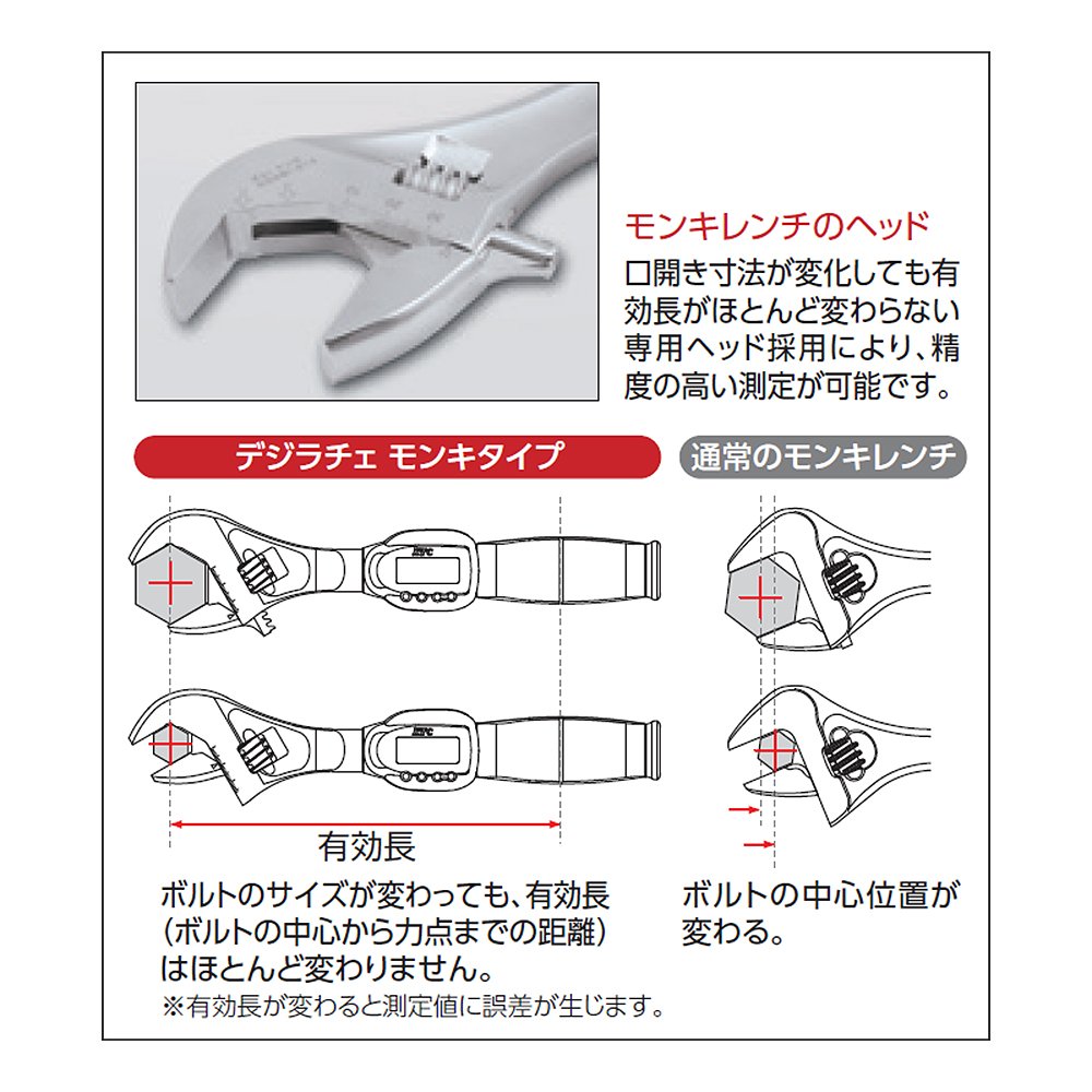 ● It is a digital torque wrench that can be handled with a monkey wrench sense.