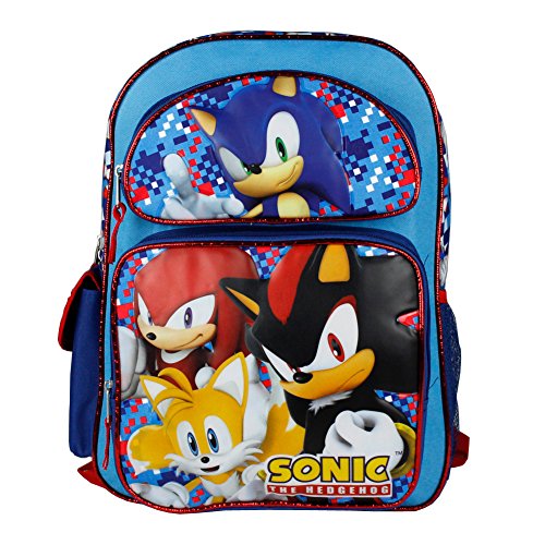 -. Binding : Toy -. Brand : Sega -. Color : multi-colored -. EAN : 0843340136417 -. Feature : Padded Adjustable Straps / 1 Main Zippered Compartment / 2 Front Pockets / Velcro and Mesh Side Pockets / Measurements: 12 x 5 x 16 -. IsAdultProduct : 0 -. Label : Sega -. LegalDisclaimer : US Supplier! We ship Fast!! This product usually ships same day! Please contact us if you have any questions about larger quantities or expedited service! We offer the Best Customer Service :-) -. Manufacturer : Sega -. MPN : 136417 -. NumberOfItems : 1 -. PackageQuantity : 1 -. PartNumber : 136417 -. ProductGroup : Toy -. ProductTypeName : TOYS_AND_GAMES -. Publisher : Sega -. Size : 16" -. Studio : Sega -. Title : Sonic the Hedgehog Blue 16" Backpack Boys School Bag -. UPC : 843340136417
