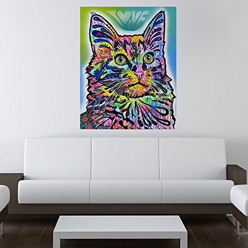 My Wonderful Walls Animal Pop Art by Dean Russo Angora Cat Wall Sticker Decal, 15 by 19-Inch, Blue/Turquoise/Lavender/Pink/Green/Yellow