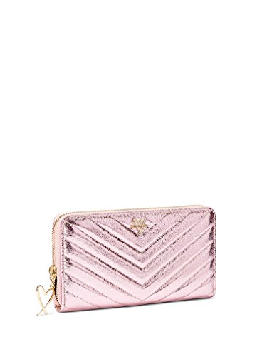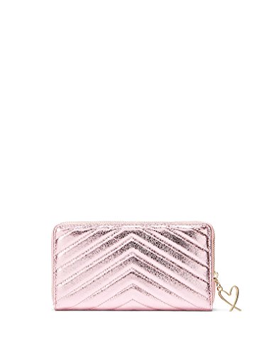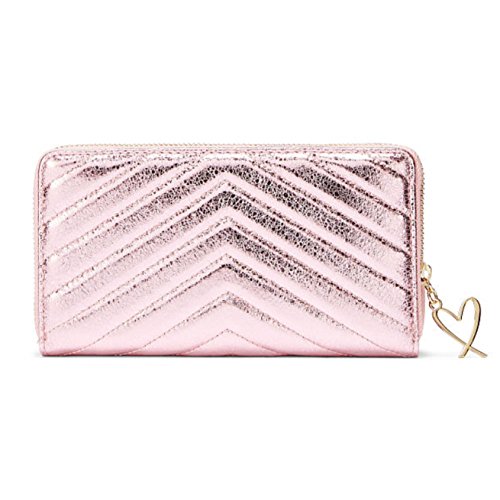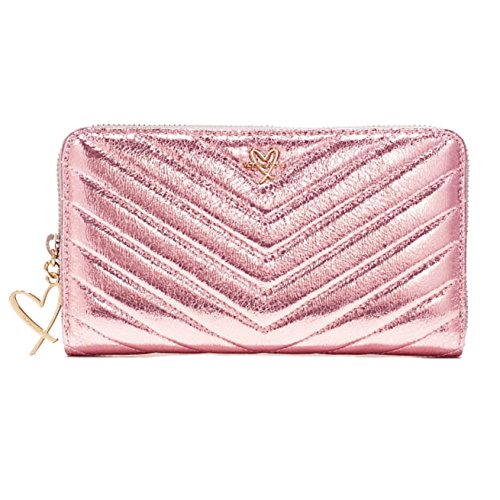 Victoria's Secret Wallet V-Quilt Metallic Crackle Zip Wallet, Pink