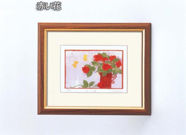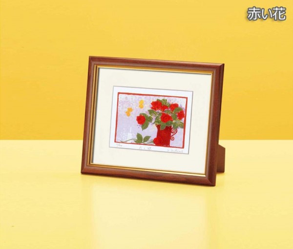 | 美しい色彩と鮮やかな発色が魅力のシルク版画です。花の色に風水の意味が込められており、吉方に飾ると良いとされています。スタンド式で、壁掛けにも置き型にも使用していただけます。 |