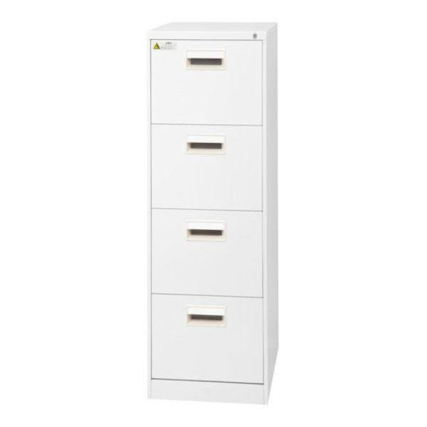 幅広く使え、もっとも多く利用されているサイズのファイリングキャビネット。往復文書、各種資料、海外向け書類などの整理に最適です。オートロック式で、各段同時施錠できます。