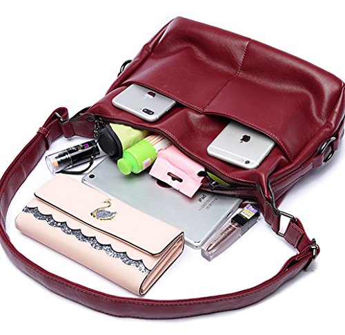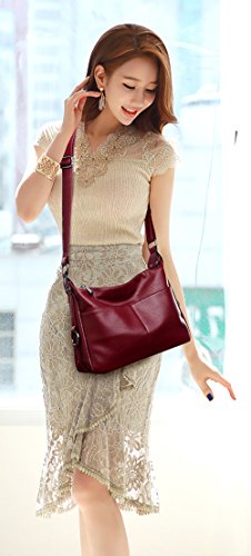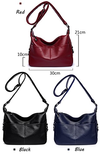Color: Black, Blue, Wine Red Size: 11.8" Length x 3.9" Width x 8.3" Height Outer material: PU leather Lining: Dacron Style: shoulder bag/crossbody bag/tote bag Capacity: Large enough for daily use, fits Ipad, wallet, small folded umbrella, keys and so on.