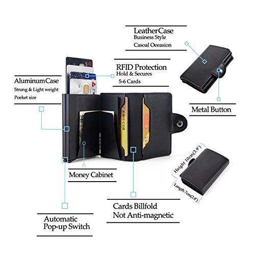 -. Feature : CARD PROTECTOR: The RFID protection card holder can perfectly block unwanted RFID scanners, includes RFID blocking technology to prevent unauthorized access to personal information, designed to block RFID readers from scanning your credit cards, debit cards, banking information, smartcards / LIGHT WEIGHT: This RFID Aluminum card holder is very small and light, easy to carry for a day to day traveling or for business occasion, perfect for business cards, name cards, credit cards etc / Double rfid case: You can store 10-12 credit card size cards or 25-30 name cards, this is great for both men and women / PERFECT for GIFT GIVING: Perfect present for father, son, husband, friend, and who always go with multiple cards or name cards, 100% satisfaction guranteed