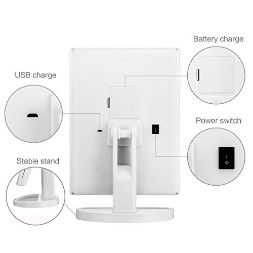 - FUNCTIONAL STORAGE:The bottom tray allows you to keep all of your beauty necessities in one convenient place,such as lipsticks,earings and other bracelets.Powered by a USB charging cable (included) or 4 AAA batteries (not included).