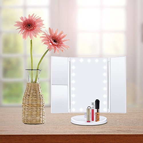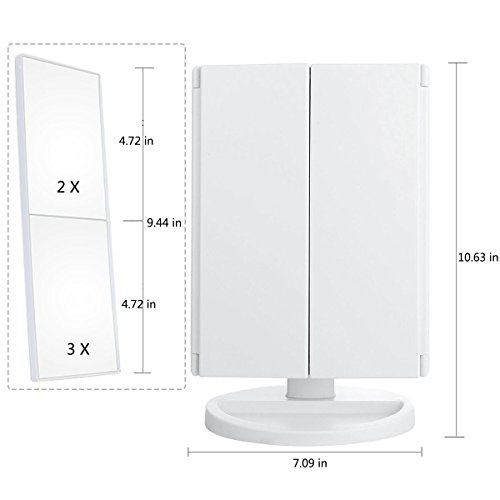 - 3 MAGNIFYINF MODE:Trifold design makeup mirror,fashionable and elegant.It is equipped with a 1X/2X/3X magnification,will allow you to see tiniest cosmetic details or skin flaw when applying mascara,eyeliner,lipstick.