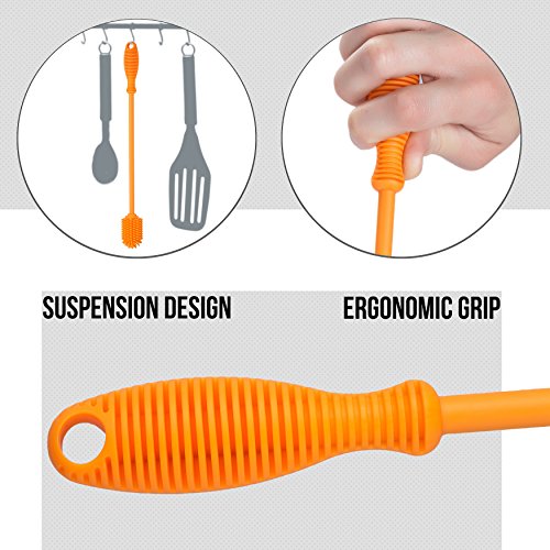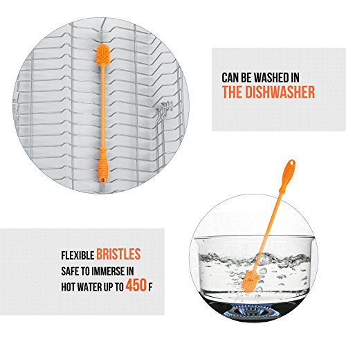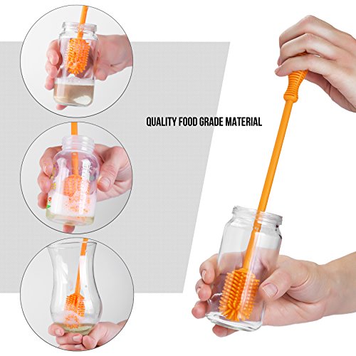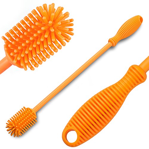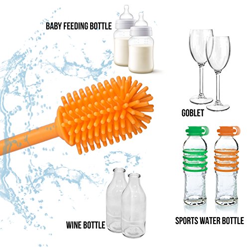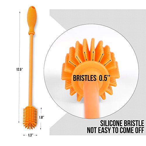 -. Feature : High-Quality Material - Bottle brush cleaner is made of high-quality silicone. The neck bottle brush is very durable and long-lasting. It will not scratch, does not absorb fat, unpleasant odors and does not accumulate bacteria. / Excellent Cleansing - Modern technology has helped to make the perfect head of a long bottle cleaner. The silicone brush is compact, firm, but very flexible. It can effectively clean even the most inaccessible places. / Ergonomic Handle - Water bottle brush is very ergonomic with a 12in Long Handle. The non-slip silicone will help you grasp the cleaner bottle brush even if you have soapy hands. / Suitable for All Bottles - The comfortable and high-quality plastic bottle brush efficiently cleans bottles, thermoses, tumblers of all shapes, sizes, and materials. / 100% Safe & Easy to Clean - Baby bottle brush is made of eco-friendly food grade silicone, FDA-approved, Non-Toxic, BPA-free, Hypo-allergenic & anti-bacterial material. It can be cleaned in the dishwasher.