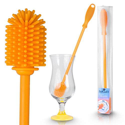 -. Title : Bottle Brush by BelgoFF - Bottle Scrubbing Silicone Kitchen Cleaner For Washing Glass, Baby, Plastic, Beer, Wine, Narrow, Neck, Water Bottles, Tumblers, Thermoses, Dishes with Long & Non-Grip Handle.