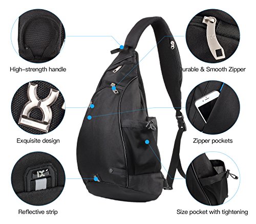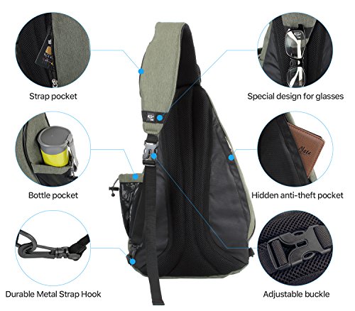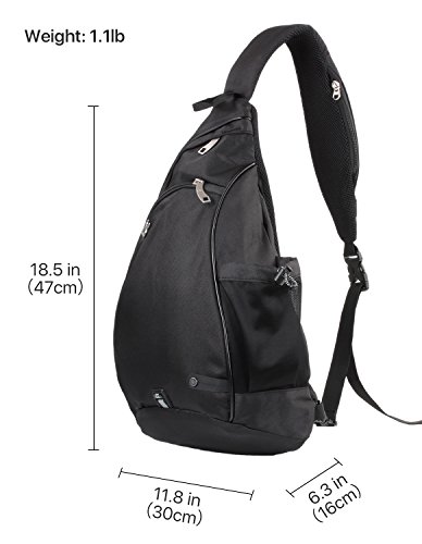 -. Feature : ★Ultra lightweight but durable sling bag - Made of durable polyester material, make it super comfortable, lightweight and durable to carry, featuring a spacious main pocket. Room for camera, iPad or a small laptop computer (up to 12"). / ★SIZE: 18.5" Sling Shoulder Bag. DIMENSIONS: 11.8" x 6.3" x 18.5" (L*W*H), WEIGHT: 1.1lb / ★Unbelievable Storage - No other bag has this many compartments! Equipped with several smart organizer pockets, such as 1 hidden anti-theft pocket on back & 1 external water bottle holder on side, 1 little ppocket on strap can put your cards, 2 front pocket for cell phone or notebook, 2 inner pockets in the largest pocket. Plenty of room for gadgets, books, water bottle & ipad. Easy access to small items. / ★Satchel strap is adjustable for as tight/loose, to hang as high or low as you want.Easily Changeable Strap Direction according to your preference. / ★REVERSIBLE SHOULDER STRAP DIRECTION - The perfect pack for both lefties & righties with reversible large, softly padded shoulder strap. Versatile & compact backpack, perfect as city daypack and for traveling as carry on lage. Suitable for men and women.